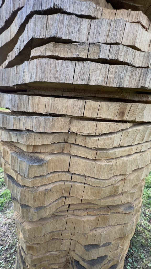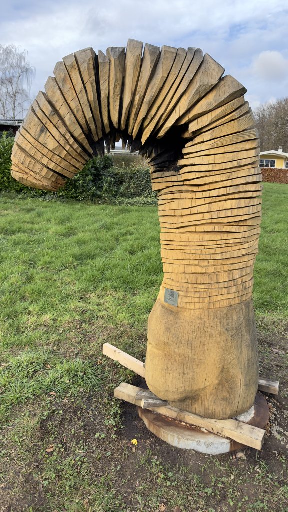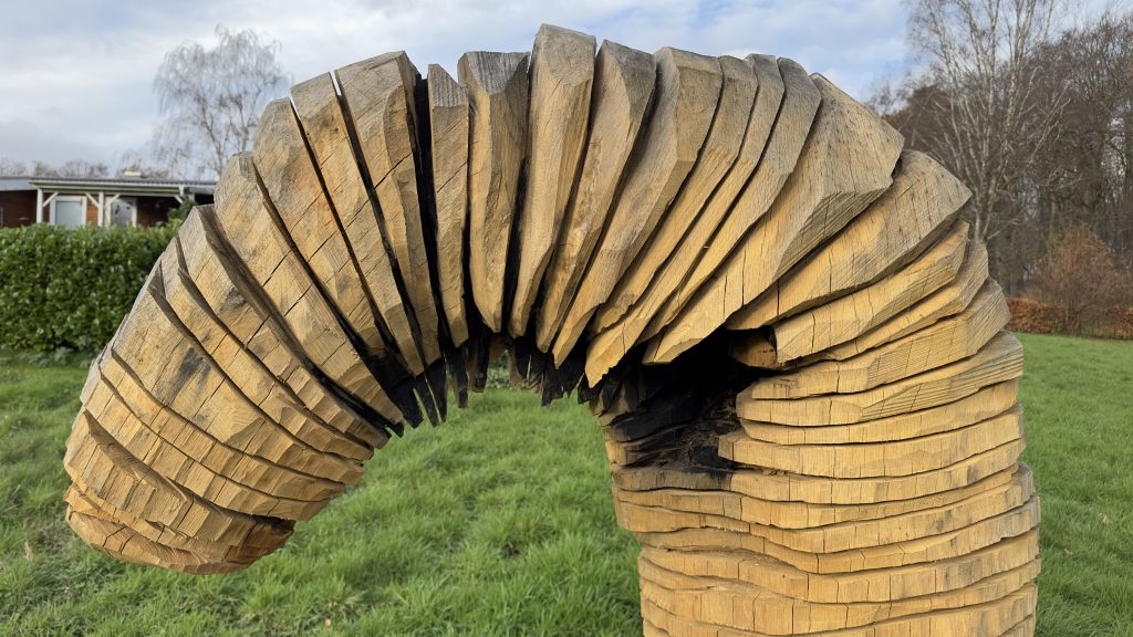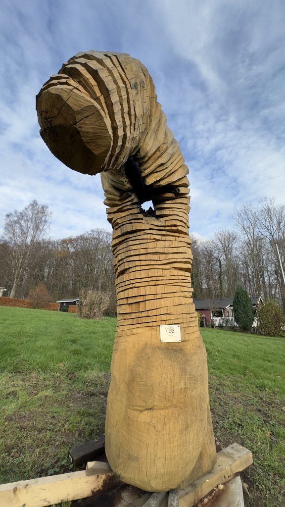Du står nu ved skulpturen “Indulge” som ud over at give dig som vandrer på Gendarmstien en oplevelse, også er tænkt som et “Insekthotel” med både enkelt og dobbeltværelser. “Indulge” blev til i 2023 i forbindelse med en skulpturfestival afholdt i Sønderborg.